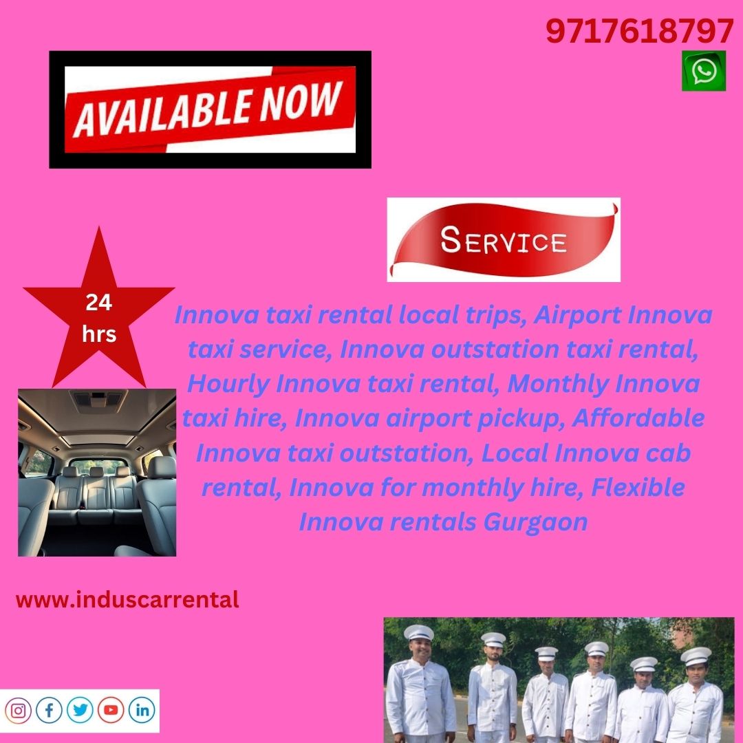 Innova taxi rental local trips, Airport Innova taxi service, Innova outstation taxi rental, Hourly Innova taxi rental, Monthly Innova taxi hire, Innova airport pickup, Affordable Innova taxi outstation, Local Innova cab rental, Innova for monthly hire, Flexible Innova rentals Gurgaon